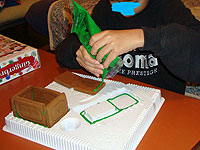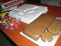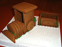 プラスチックの専用台に、アイシングを使ってクッキーを組み立てていきます。