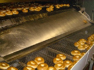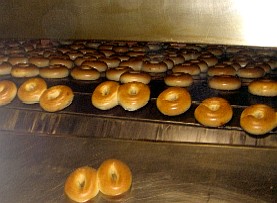 入ってすぐのところでベーグルが次々と焼きだされてきていました。