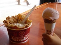 アイスの種類とトッピングとコーンの種類?を選ぶと石の上で混ぜてくれます。