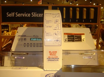 近くのスーパーにあった、セルフサービスの食パンスライサー。