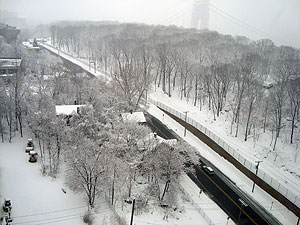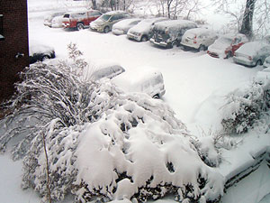 とりあえずいつもの時間に登校。でも視界は悪いし降り始めは滑って怖いので やはり車は避けて、