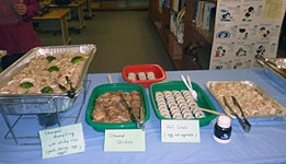 お店で買ってきたものやボランティアの保護者が自宅で料理したものを持ち寄り、バッフェ形式で