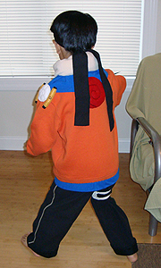 更に小物を作って取り付けて、何となくナルトに見える上着を作って着せました。