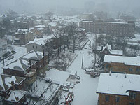 天気予報によると、午前中の早いうちには雪が雨に変わる模様。