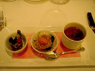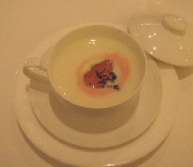右の白いグラスに入ってるのは、アスパラガスのデザートでした。