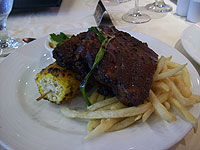 さて。博物館を満喫した後は、楽しいDinnerが待っています。 White House近くの、美味しいCrab cakeを食べさせてくれるというレストランに行きました。 OLD EBBITT GRILLというこの店は、Webページによると 「upscale American saloon food」を食べさせてくれるらしく、 また、Oyster Barも充実しているということ。 ちょっと雰囲気のよさそうなお店ですが、Kids Menuもあることだし、 早い時間なら子ども連れでも全然気にすることないだろうと、 Dinner timeにはまだ早いんだけどなぁ・・・ぐらいの時間帯を狙って入店しました。