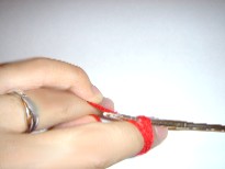 普通の縫い糸(用意する物、に書き忘れました)を結び付けます。