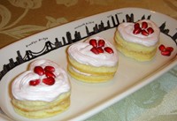 ハートのスポンジ、ざくろクリーム、ハートのスポンジと重ねて、