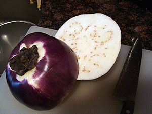 イタリアのナスの一種で、普通のナスと同じように使ってもいい、との事。しかも種は少な目。